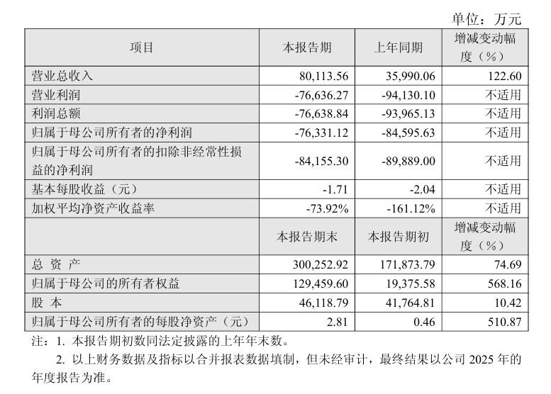 2月27日,迪哲医药(688192)发布公告,2025年度业绩快报显示,公司营业总收入为8.01亿元,同比增加122.60%。归母净利润约亏损7.63亿元,较上年度减少亏损8265万元。