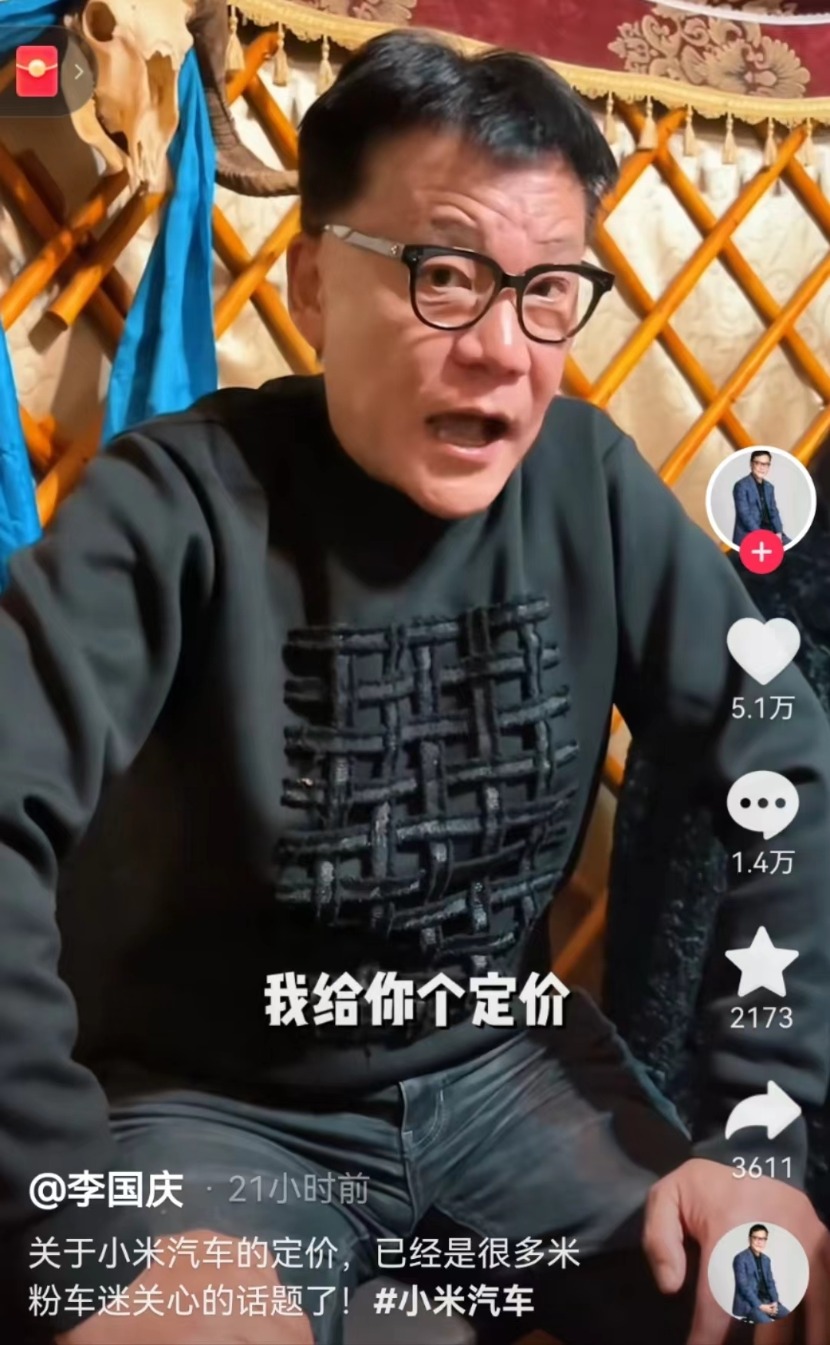 3月6日,当当创始人李国庆发视频喊话小米董事长兼CEO雷军,并为小米汽车定价15万元~20万元。